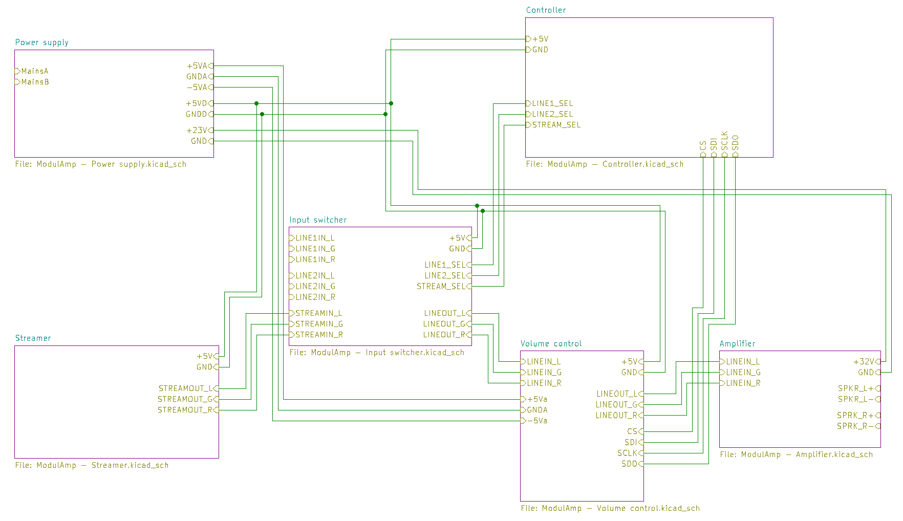 This module needs to provide at least three voltages: +5V for the streamer and controller modules, -5V for the volume control module, and some power for the amplifier. In this first iteration, using a Class T amplifier, we'll need just +12V.